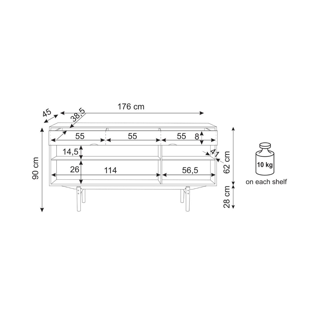 Skænken er ikke kun smuk at se på, men også skabt til hverdagen. Alle låger og skuffer er udstyret med soft close, så de lukker lydløst og elegant, og de justerbare hylder gør det muligt at tilpasse opbevaringspladsen efter behov. Med finér på bagsiden kan Aeris stå frit i rummet uden at miste sit æstetiske udtryk, og de indbyggede stillesko i benene sikrer stabilitet på ethvert underlag.