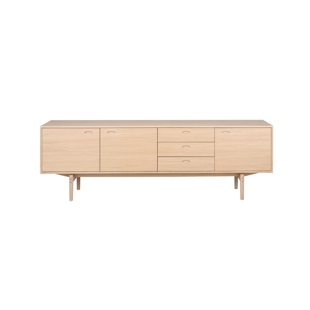 De blødt afrundede massive kanter og præcise samlinger fremhæver skænkens eksklusive snedkerhåndværk, mens de solide, runde ben understreger det gennemtænkte formsprog.