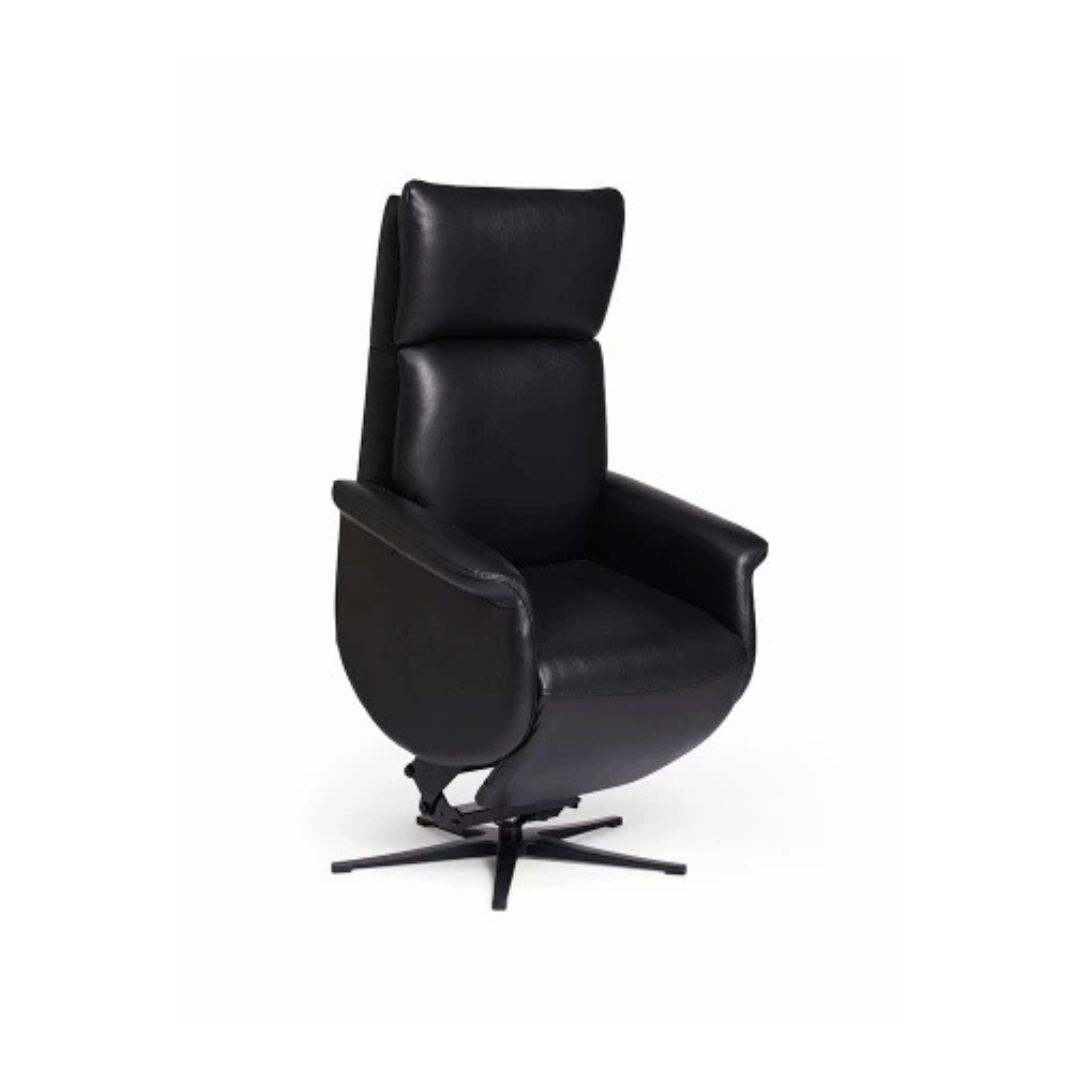 AUGUST LØFTESTOL - INDBYGGET FODSKAMMEL - SORT LÆDER - STÆRK PRIS