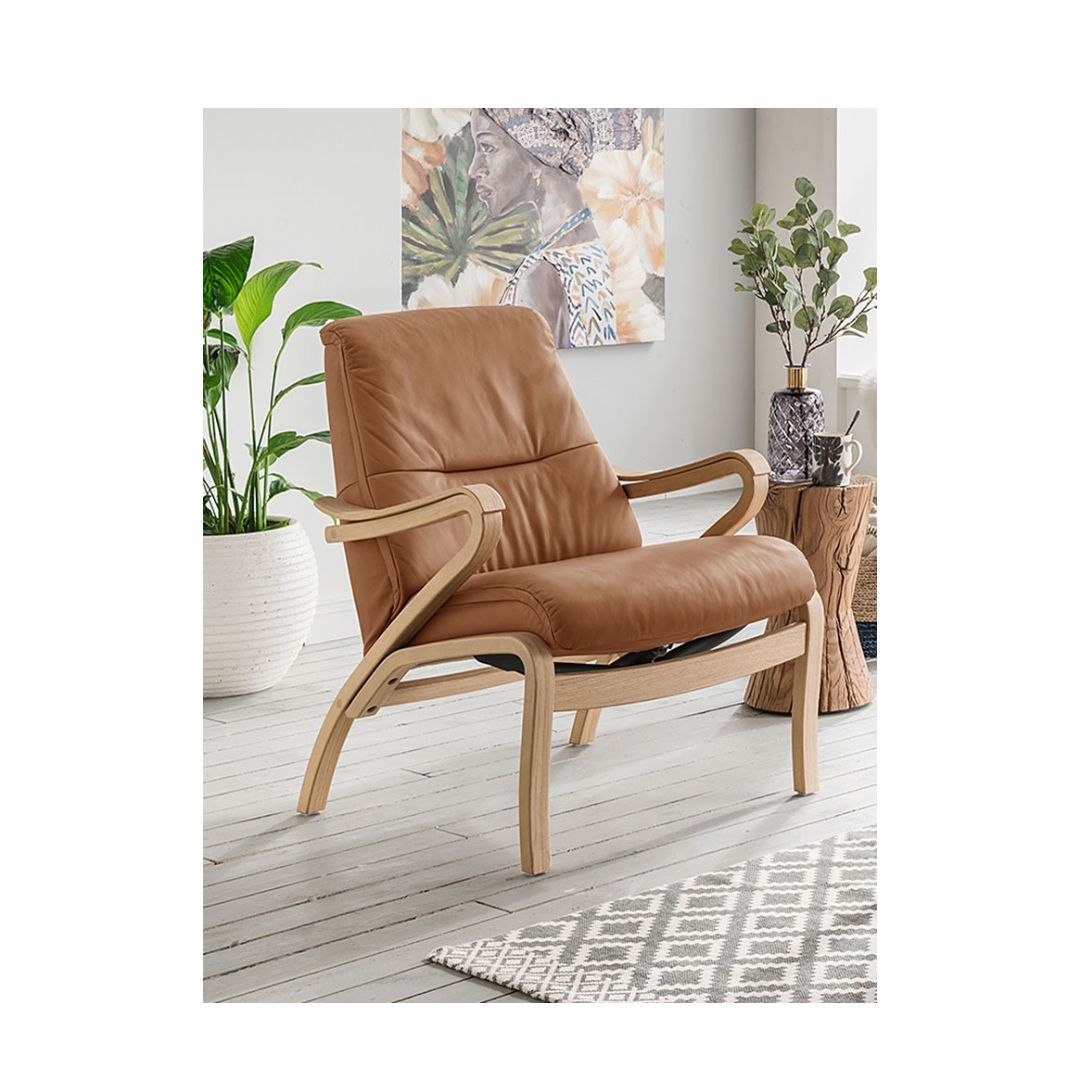 • Komfort med stil: Den balancerer fast støtte i ryg og sæde med blødt læder og naturligt træ, så du sidder behageligt i timevis.