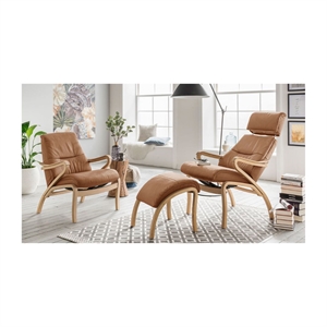 BEND - HVILESTOL MED SKAMMEL - COGNAC SEMIANILIN LÆDER - EG HVIDOLIE