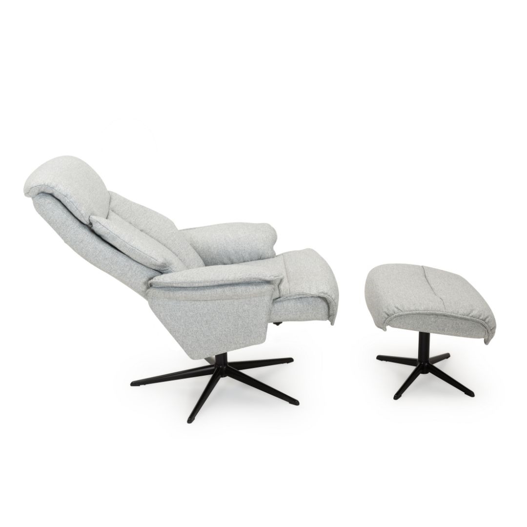 Den medfølgende fodskammel giver optimal støtte til benene og gør det muligt at slappe helt af. Sammen skaber stol og skammel en komfortzone, hvor du kan nyde rolige stunder i hjemmet.