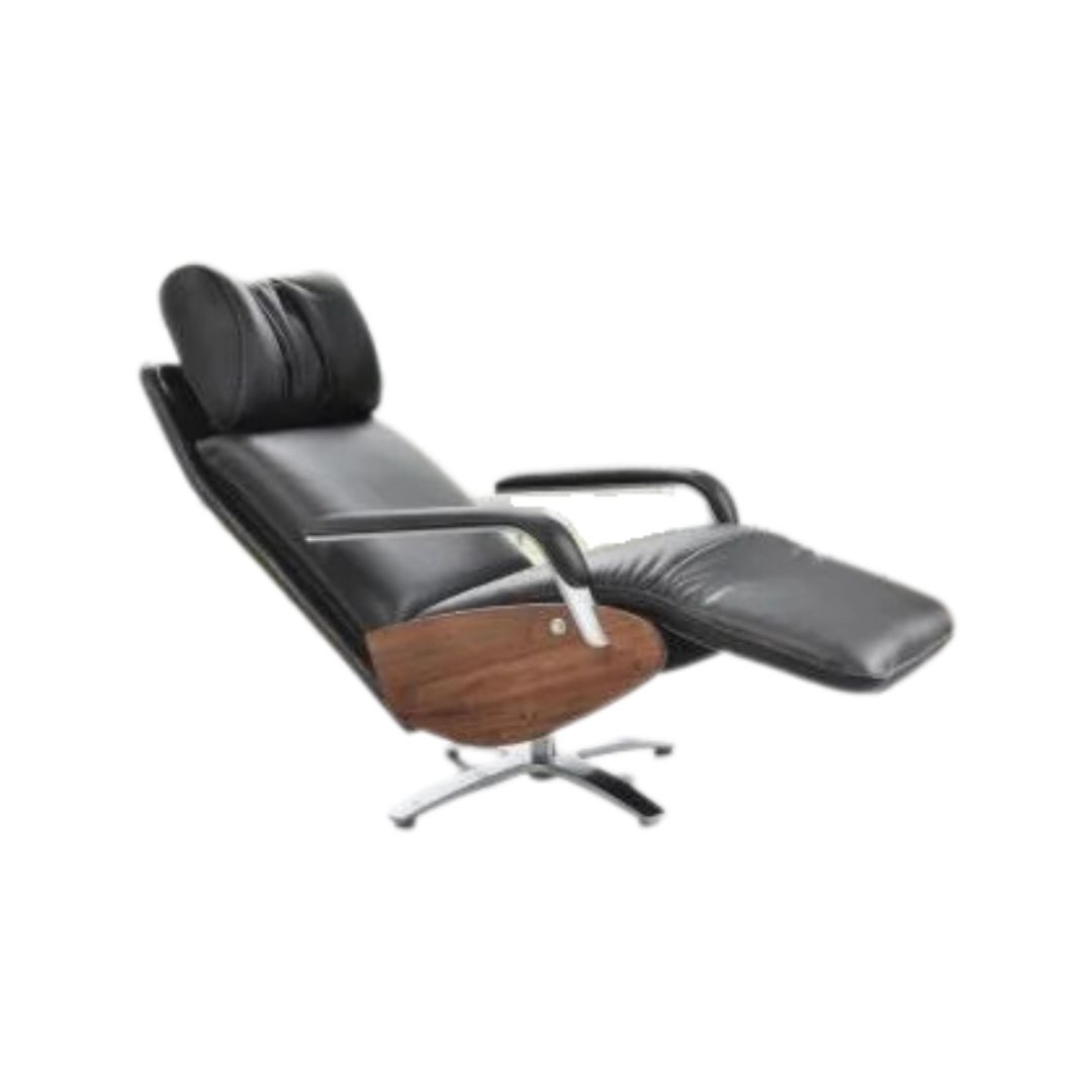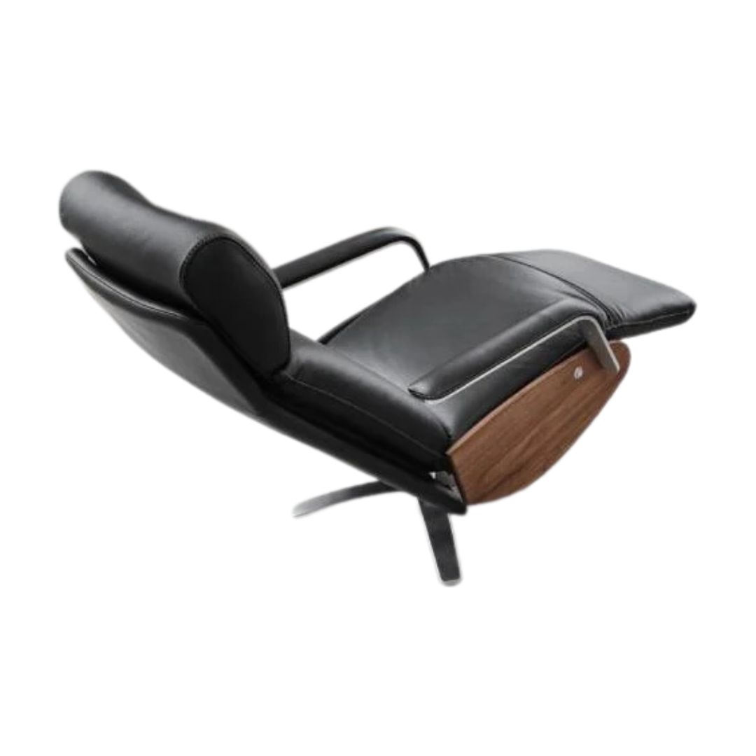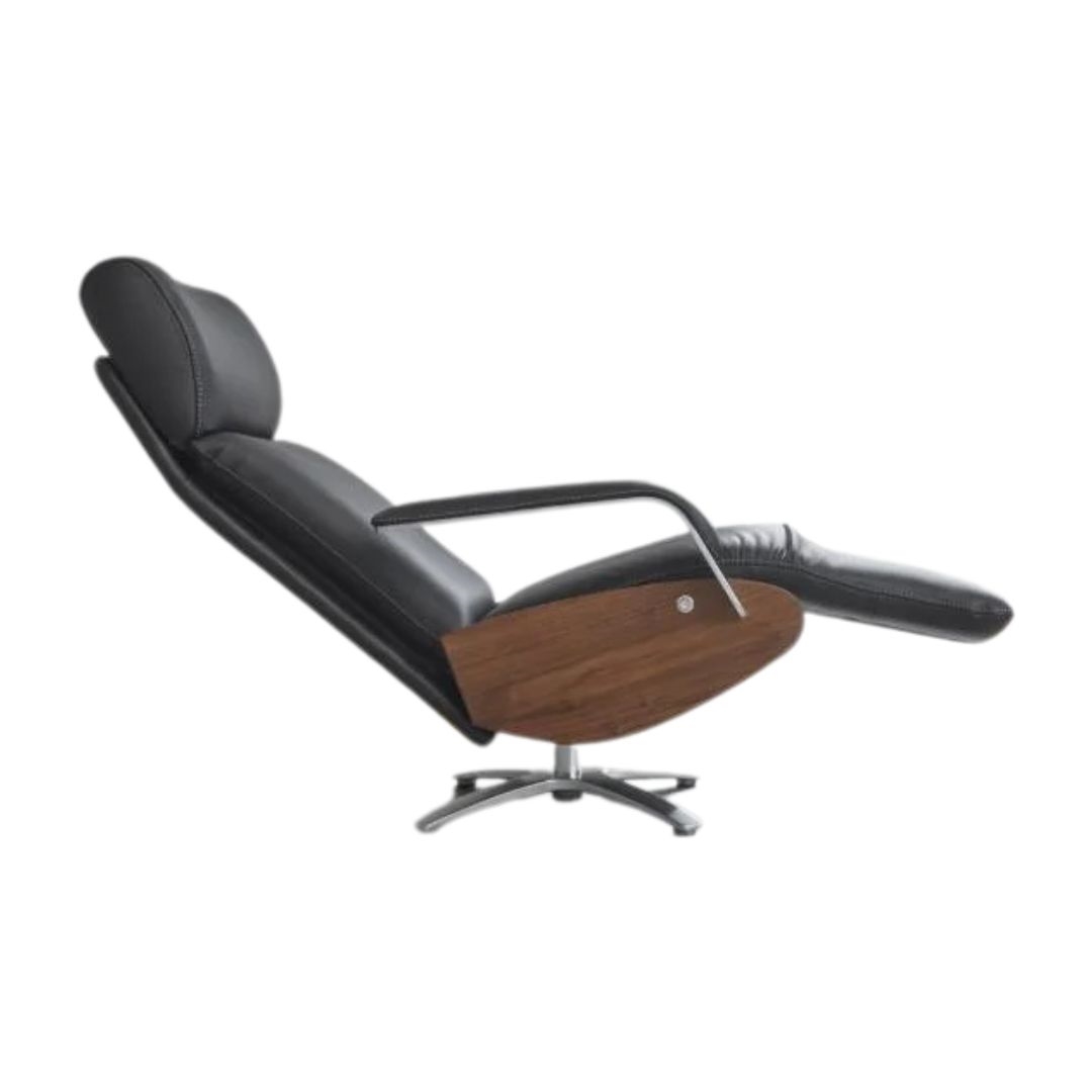 BERG CODA - LÆNESTOL M/ INDBYGGET SKAMMEL - SORT SOFT LÆDER/VALNØD