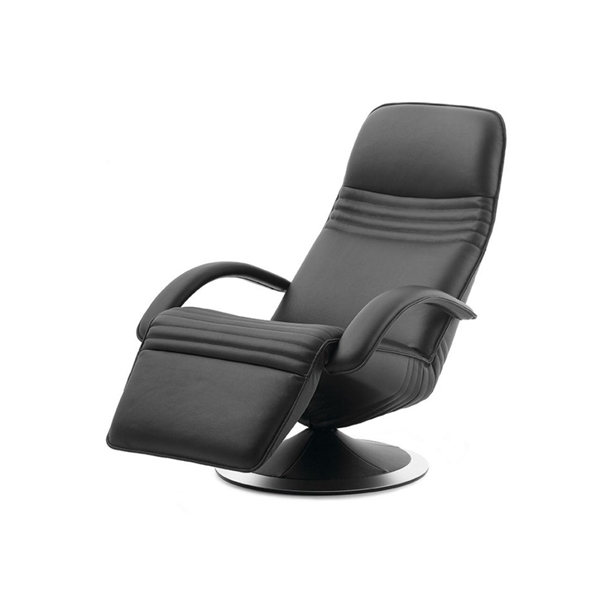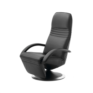 BERG UNIK - LÆNESTOL M/ INDBYGGET SKAMMEL - SORT SOFT LÆDER