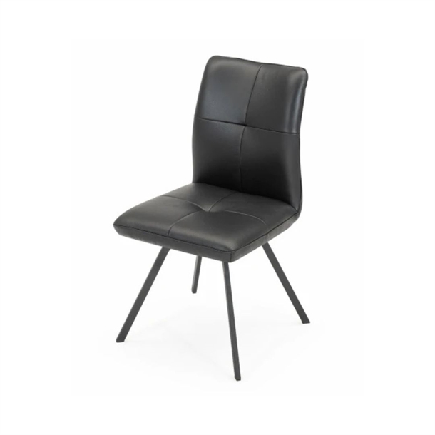 Bianca spisebordsstol - Sort Soleda læder - Sort stål - Stærk pris