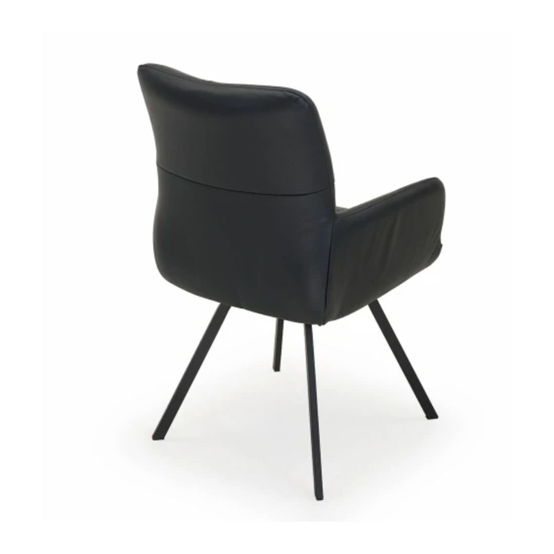 Bianca spisebordsstol m. armlæn - Sort Soleda læder - Sort stål - Stærk pris
