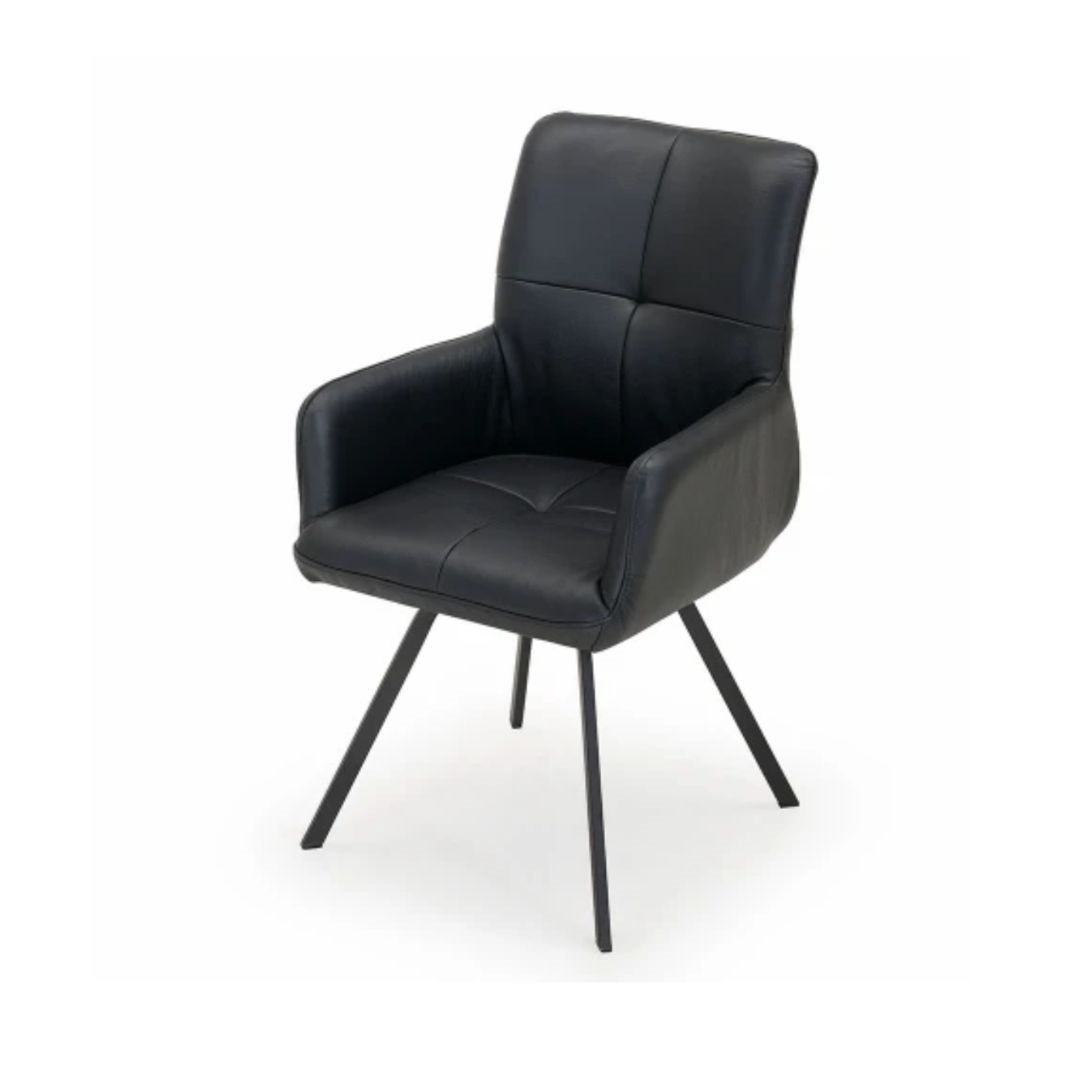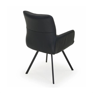 Det stilrene stel i sort stål understreger stolens elegante udtryk og sikrer samtidig stabilitet og lang holdbarhed. Kombinationen af drejefunktion, armlæn og læderbetræk gør Bianca til et funktionelt og stilfuldt valg til den moderne spisestue.