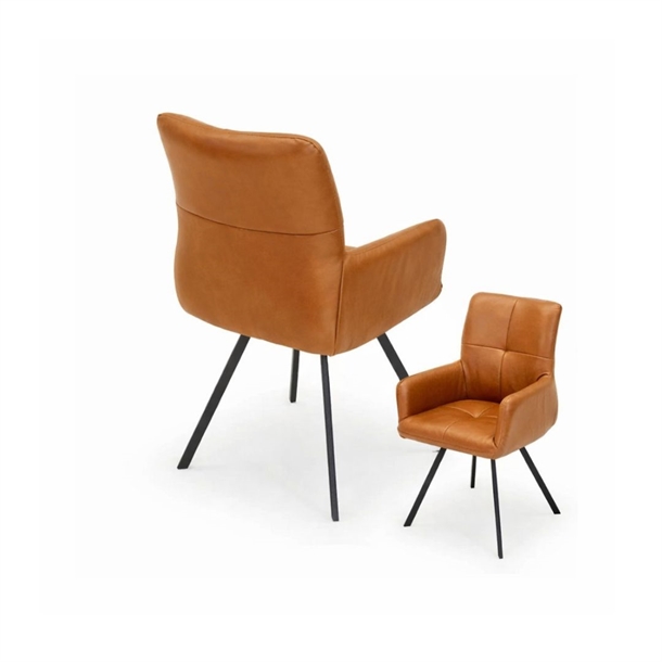 Bianca spisebordsstol med armlæn – Drejestol i cognacfarvet Soleda læder