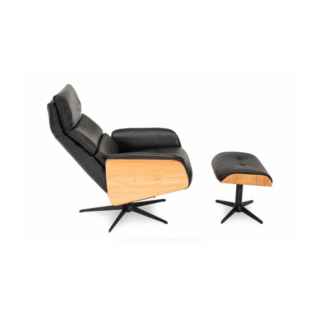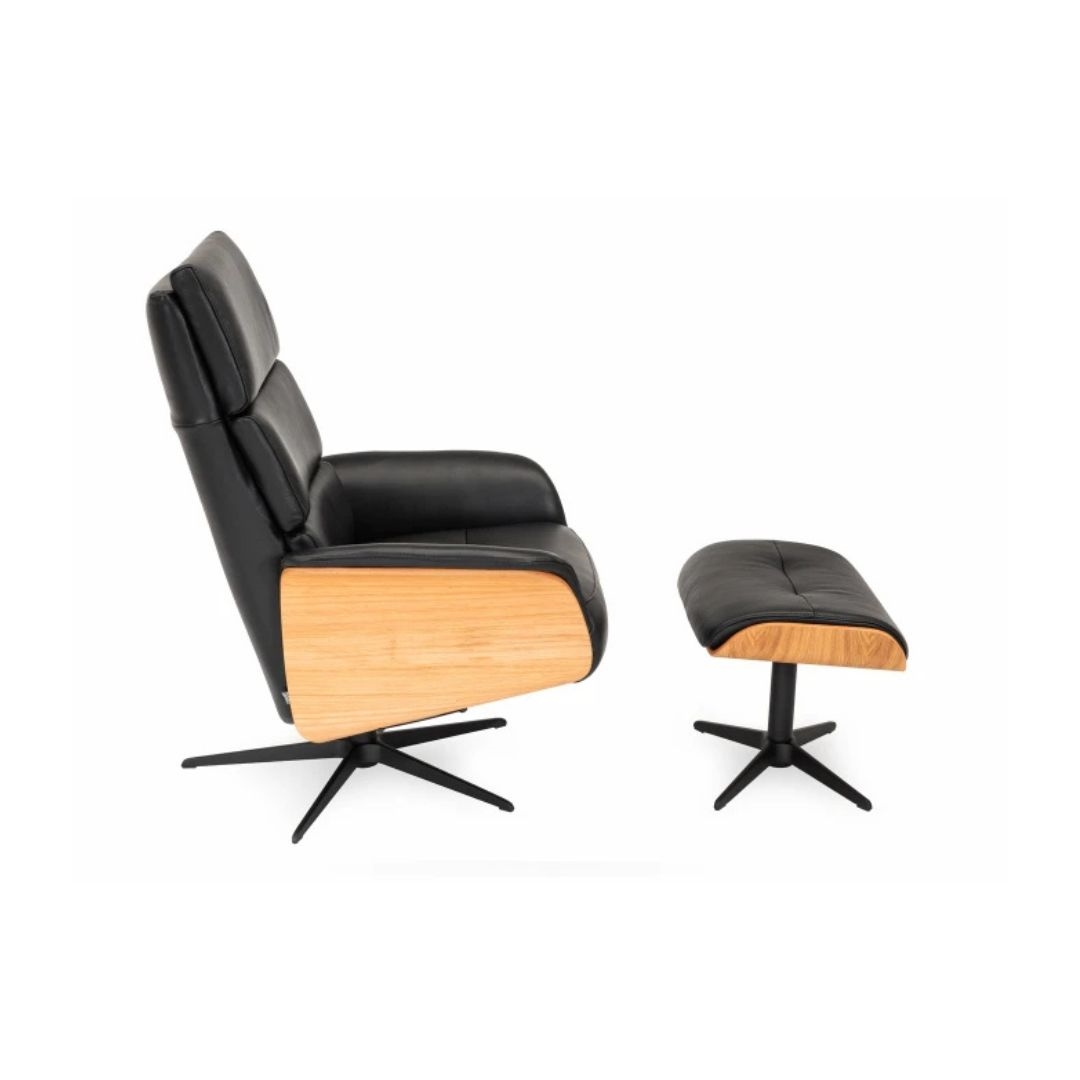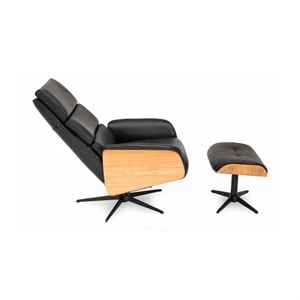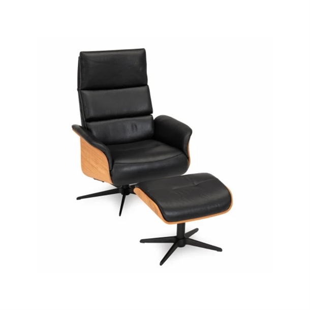 Bologna lænestol INKL. skammel - Sort semi/semi anilin læder - Eg olie