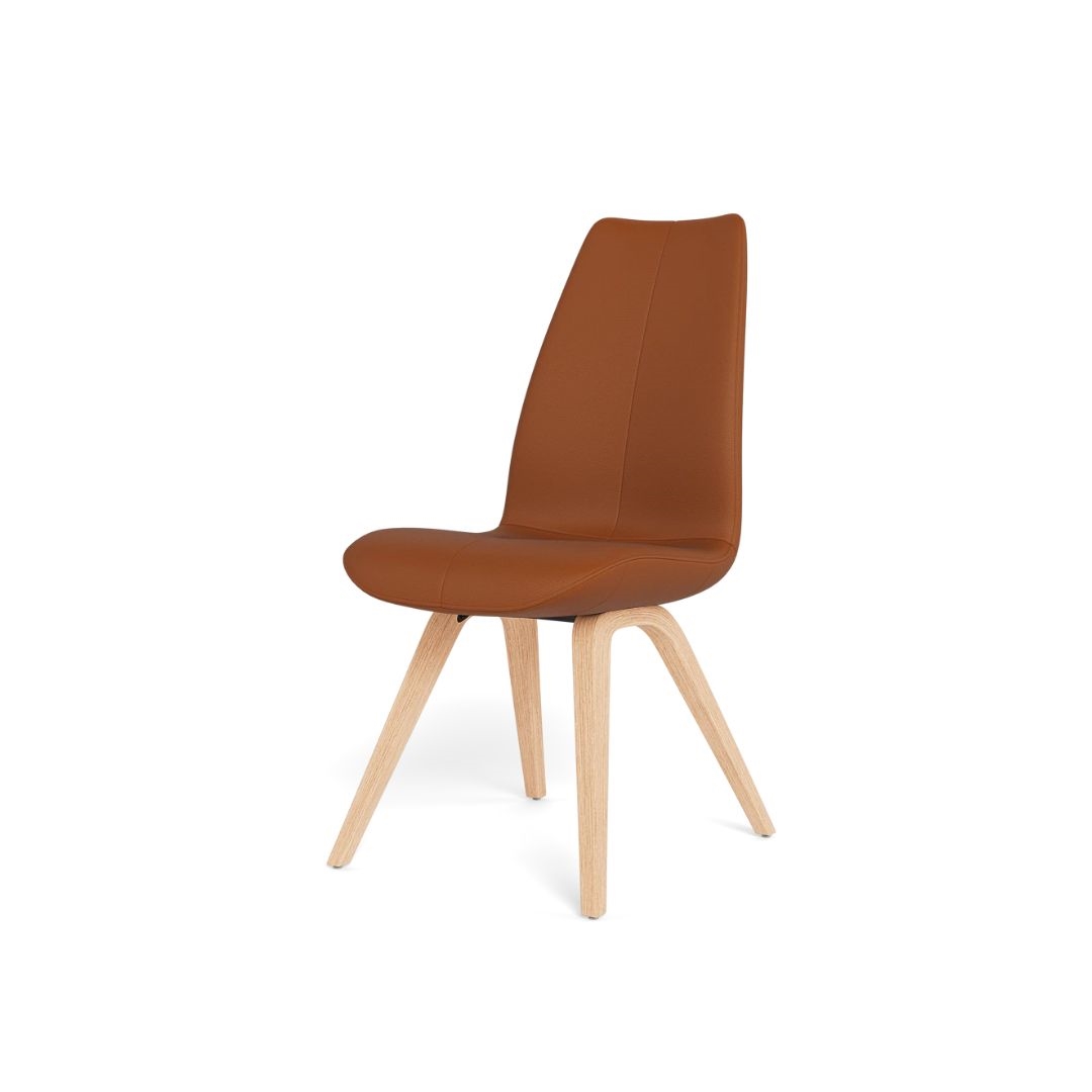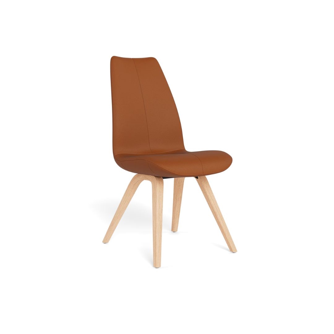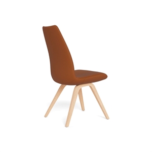 Stolen er betrukket med blødt classic semi-anilin læder, som giver et eksklusivt og tidløst udtryk samtidig med, at det er behageligt at sidde i. De lyse egeben giver et klassisk touch og sikrer stabilitet og holdbarhed.