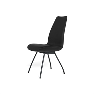 Stolen er betrukket med blødt classic semi-anilin læder, som giver et eksklusivt og tidløst udtryk samtidig med, at det er behageligt at sidde i. De sorte stålben giver et moderne touch og sikrer stabilitet og holdbarhed.