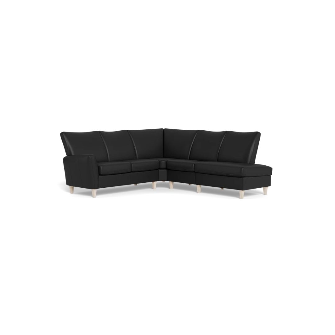 Fia sofaen i den populære open end-opstilling på 232 x 225 cm er skabt med fokus på både komfort og æstetik. Den formstøbte, faste ryg giver optimal støtte, mens den høje ryg skaber en indbydende siddekomfort, hvor kroppen kan finde ro og afslapning.