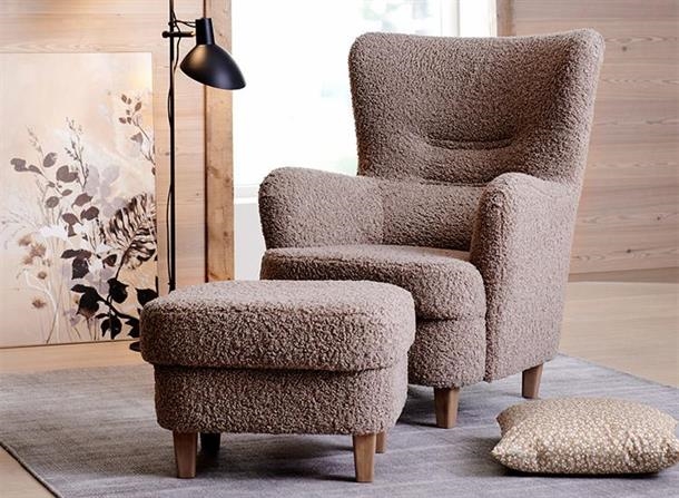 Denne Buddy lænestol er betrukket med imiteret fåreskind i dessin Glore med olieret egeben. Komforten er i top, da sædet består af koldskum med fibervat. Ligeledes er lænestolen med høj ryg, hvor du opnår ekstra støtte til ryg og nakke. For at tilføje yderligere komfort kan du med fordel tilføje den matchende fodskammel, hvor du kan få benene op og nyde den bløde og varme stol. Til lænestolen medfølger en nakkepude, som er aftagelig, således du kan benytte den efter behov.