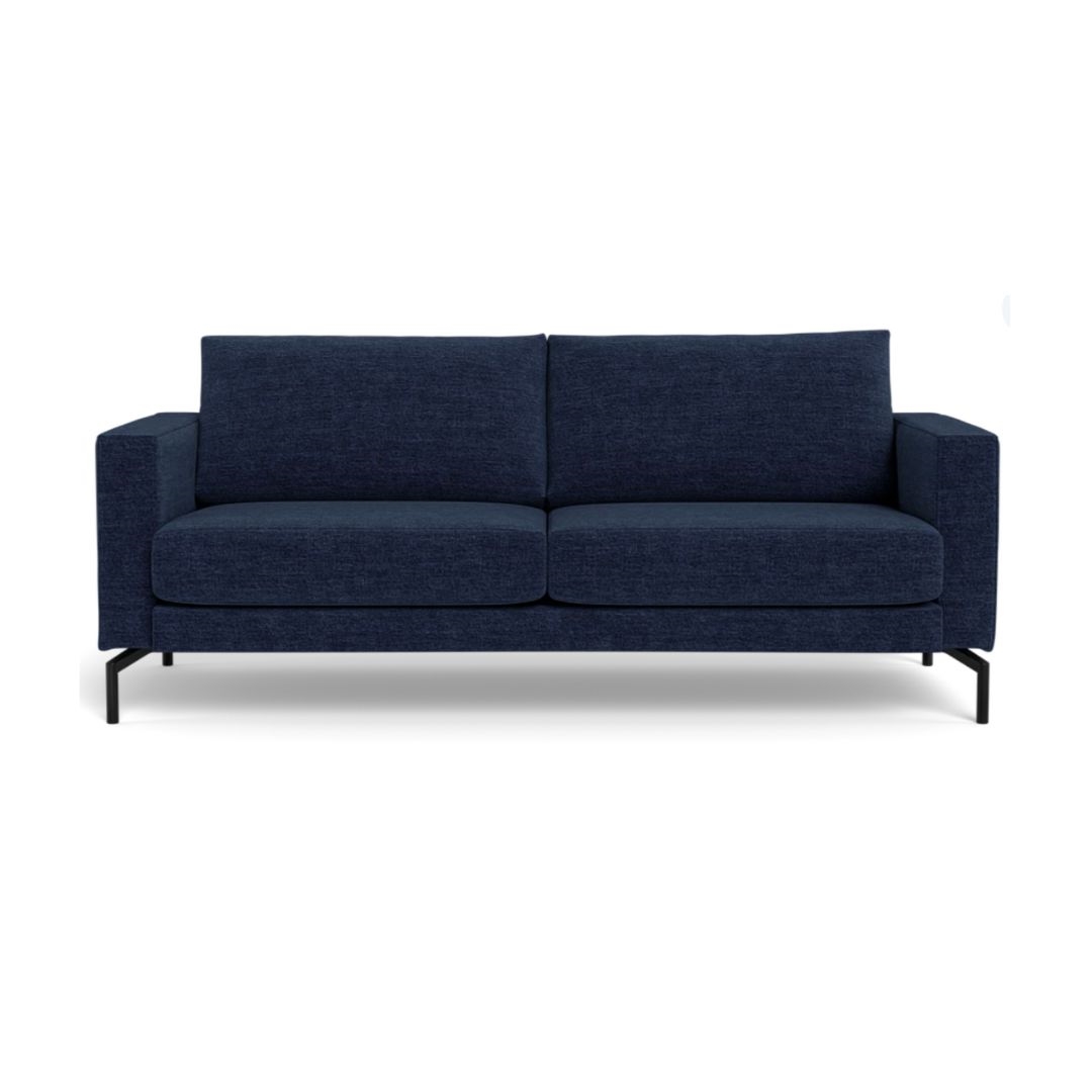 Skab en indbydende og stilren atmosfære i din stue med Cannes 2-personers sofa – en kompakt, moderne sofa i blødt og eksklusivt Alis stof i farven Blue. Stoffet har en smuk changering, der giver sofaen liv og spil i lyset.