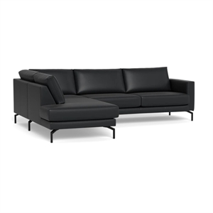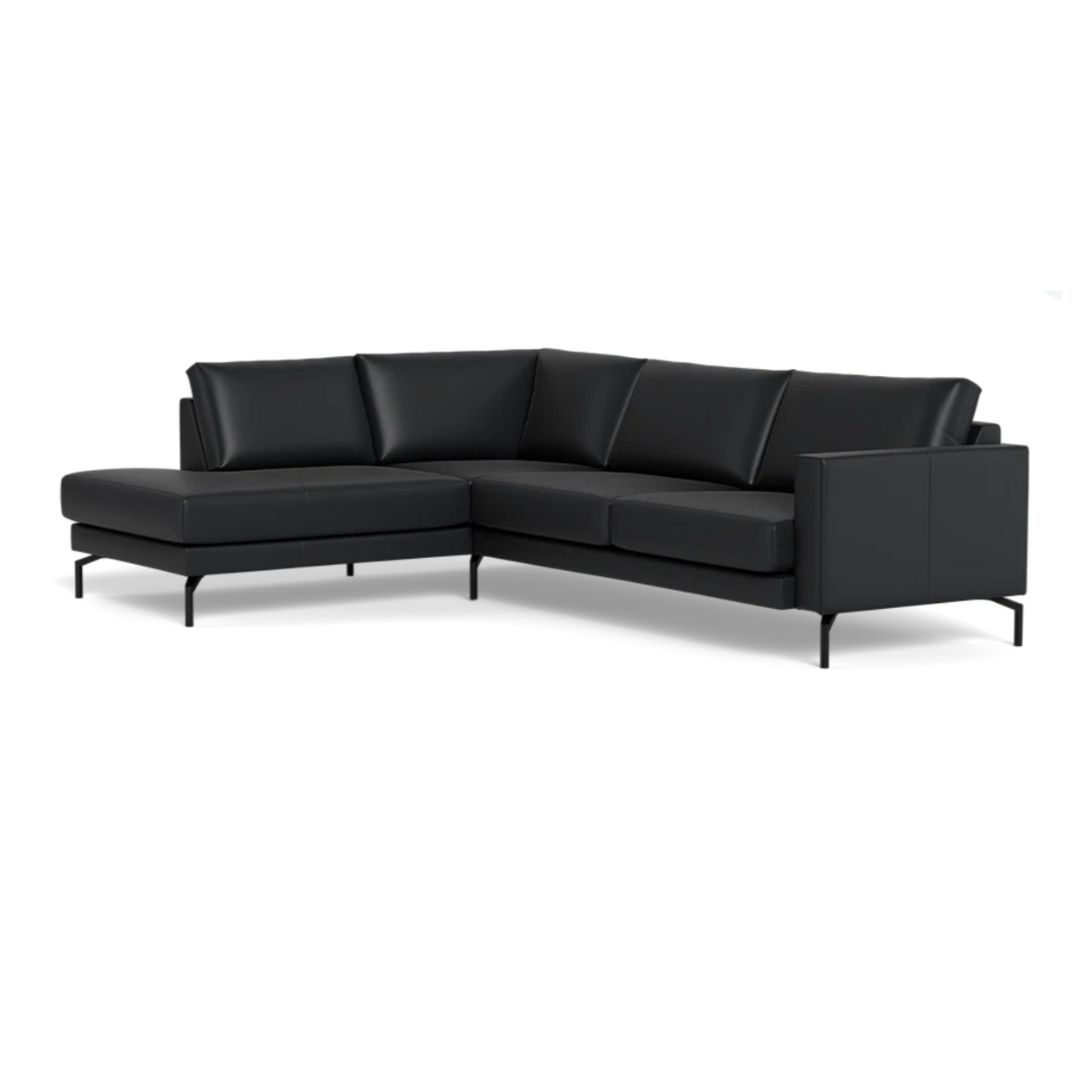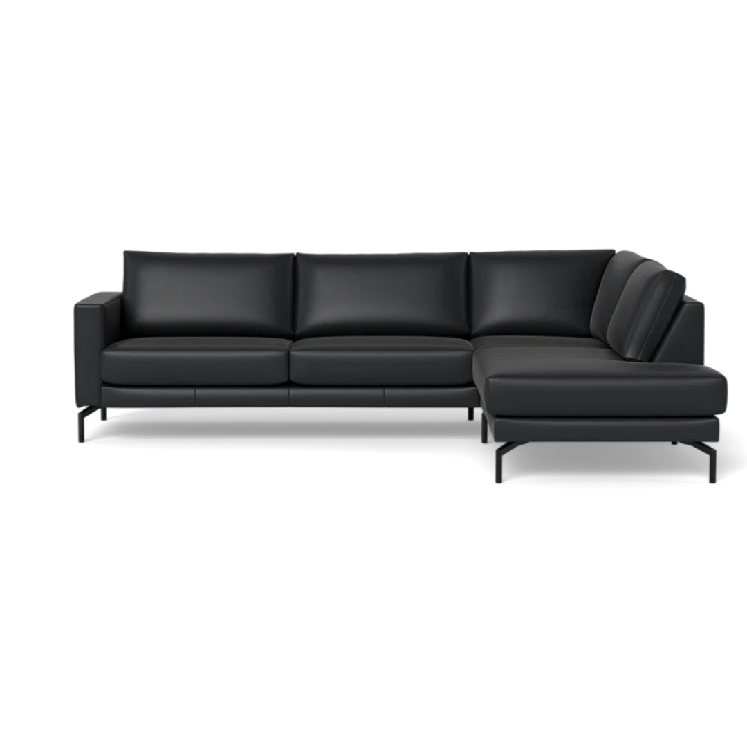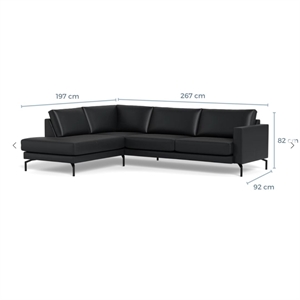 Cannes sofa med open end - 267 x 197 cm. - Semianilin læder Sort - Stærk Pris