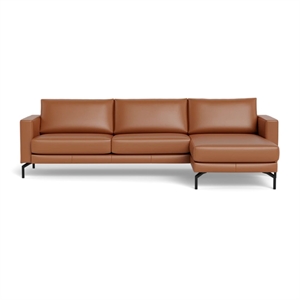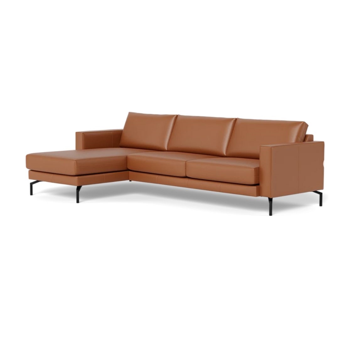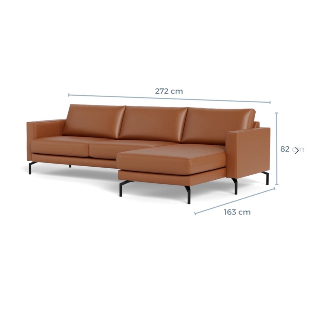 Cannes sofa med chaiselong - 272 x 163 cm. - Semianilin læder Cognac - Stærk Pris
