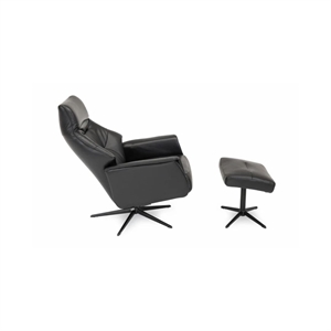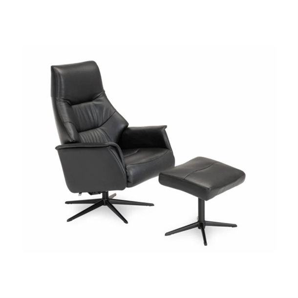 CAPRI LÆNESTOL MED SKAMMEL - SORT SEMIANILIN LÆDER - SORT SOKKEL