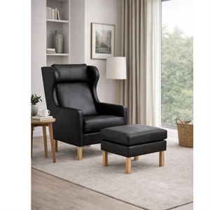 Cerena øreklapstol m. fodskammel / Sort læder 668