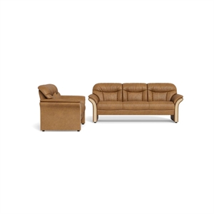 Dette sofasæt består af én 3-personers og én 2-personers sofa, og fås i et bredt udvalg af læder- og stofbetræk i mange flotte farver, så du nemt kan tilpasse sættet til din personlige stil og indretning.