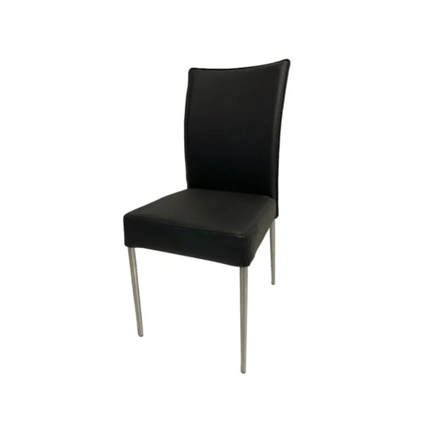 CILLE -SPISEBORDSSTOL - SORT LÆDER - BØRSTET STÅL - STÆRK PRIS