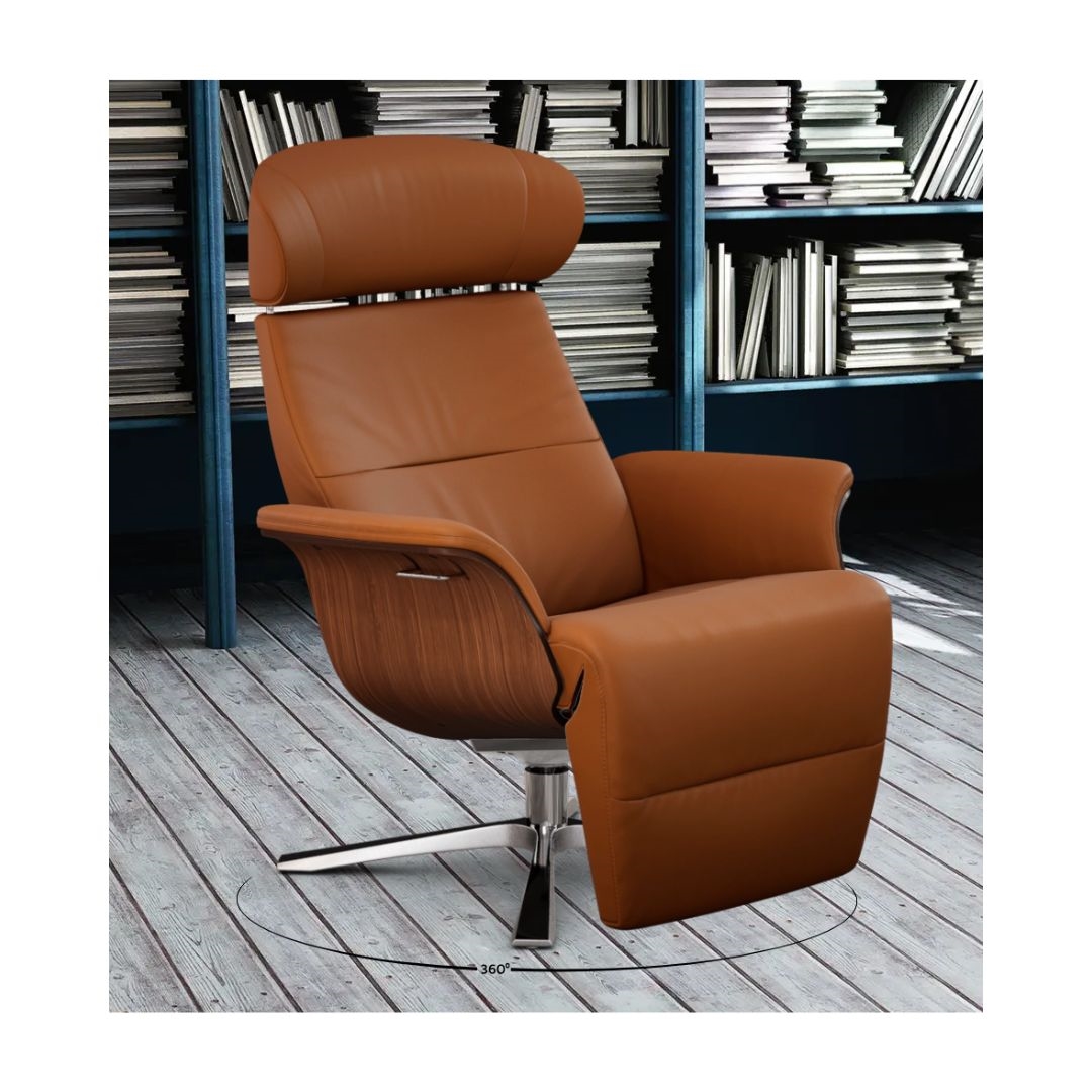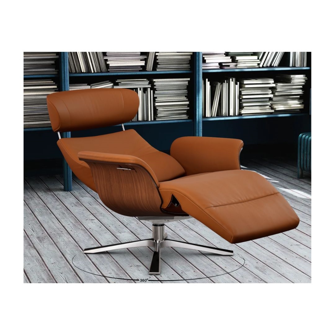 Conform - Timeout lænestol med indbygget skammel - Cognac læder / valnød