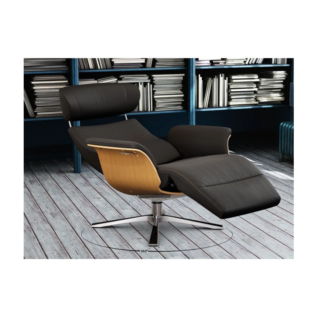 Conform - Timeout lænestol med indbygget skammel - Sort læder / Eg