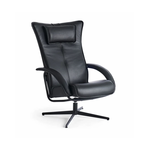 Lænestolen er monteret med den elegante S04 sokkel i sort stål, og har manuelle glidebeslag, så du kan tilpasse stolen til netop din foretrukne siddeposition. Takket være det eksklusive semianilinlæder får du både en blød overflade og en slidstærk kvalitet, der holder i mange år.