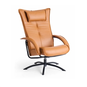 Lænestolen er monteret med den elegante S05 sokkel i sort stål, og har manuelle glidebeslag, så du kan tilpasse stolen til netop din foretrukne siddeposition. Takket være det eksklusive semianilinlæder får du både en blød overflade og en slidstærk kvalitet, der holder i mange år.