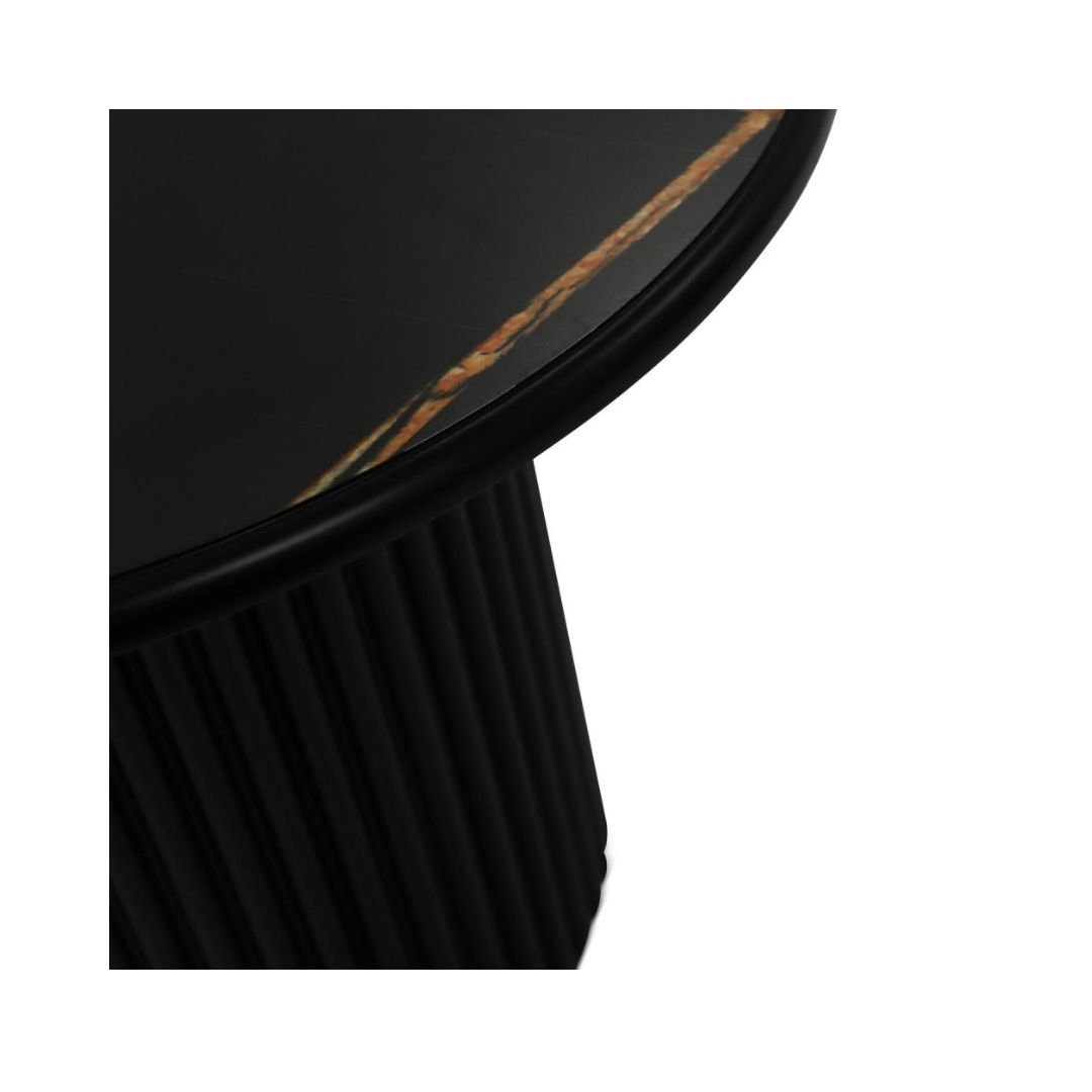 Easy sofabord - Black marmor look - Træsokkel - Mål: Ø60 x H45 cm. - Stærk pris
