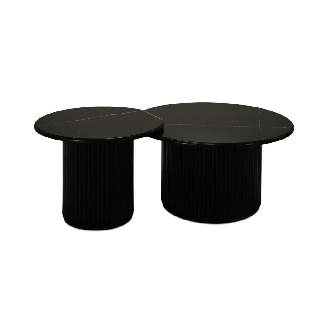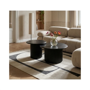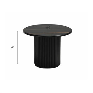 Easy sofabordet kombinerer et stilrent, rundt design med en flot sort marmorlook overflade, der tilfører rummet et eksklusivt og moderne udtryk. Bordpladen er fremstillet i MDF med slidstærk melamin, som gør overfladen nem at vedligeholde og velegnet til daglig brug. Den centrale træfod i matchende sort farve giver bordet et harmonisk helhedsudtryk og sikrer samtidig stabilitet. Med sin diameter på 60 cm har bordet en god størrelse til både mindre og mellemstore stuer, hvor det fungerer som et naturligt samlingspunkt.