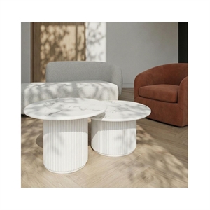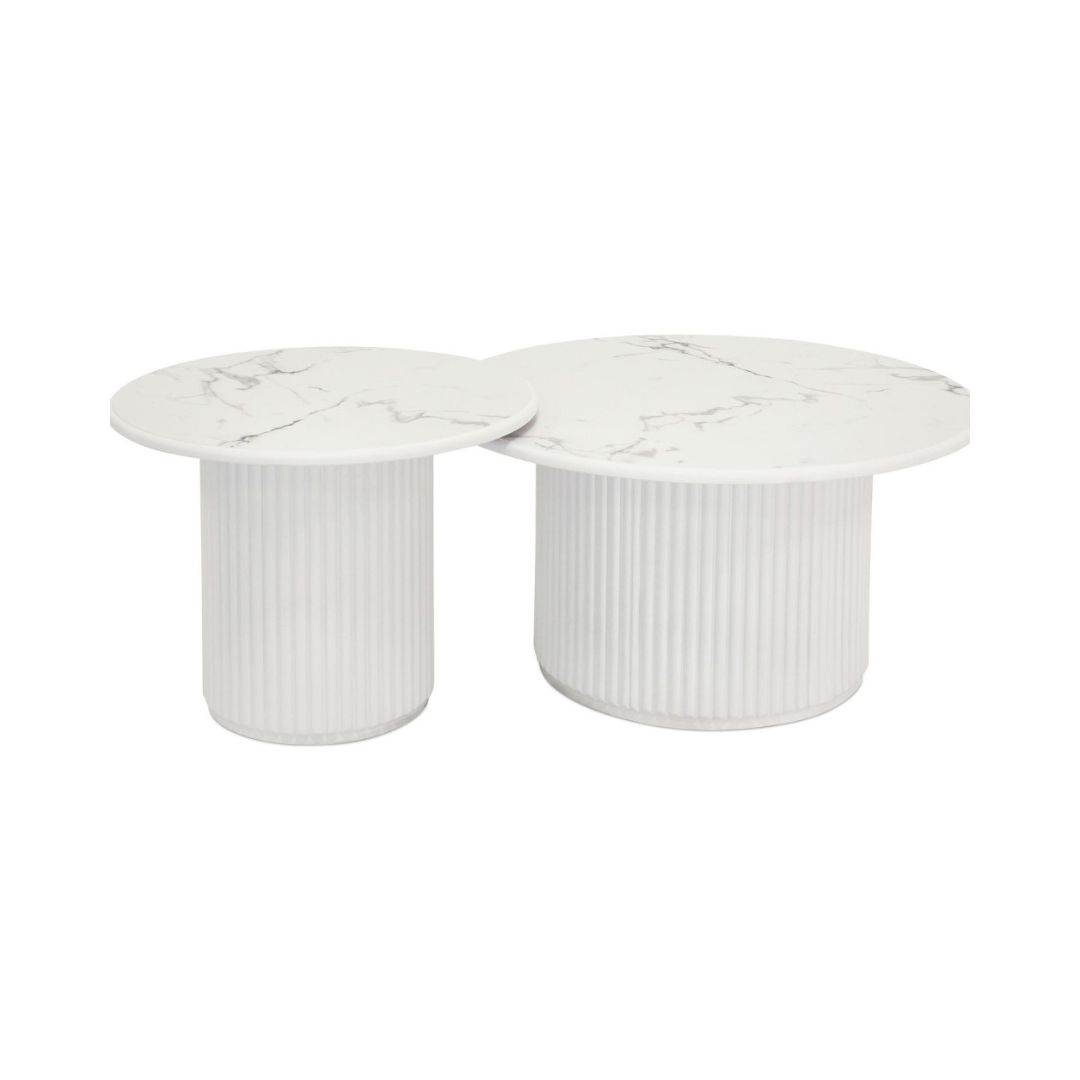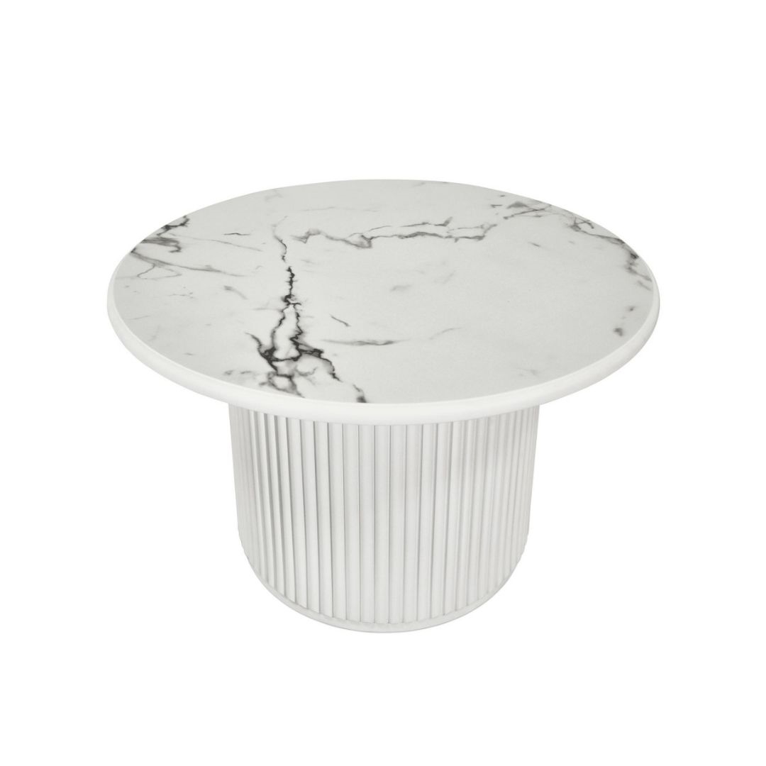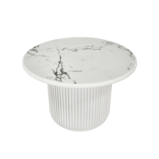 Easy sofabord i hvid marmorlook Ø80