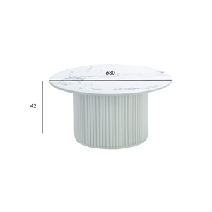 Easy sofabord - White marmor look - Træsokkel - Mål: Ø80 x H42 cm. - Stærk pris