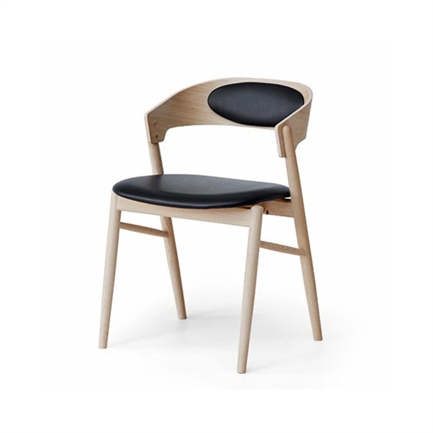 Springer spisebordsstol med polstret ryg i eg og sort læder