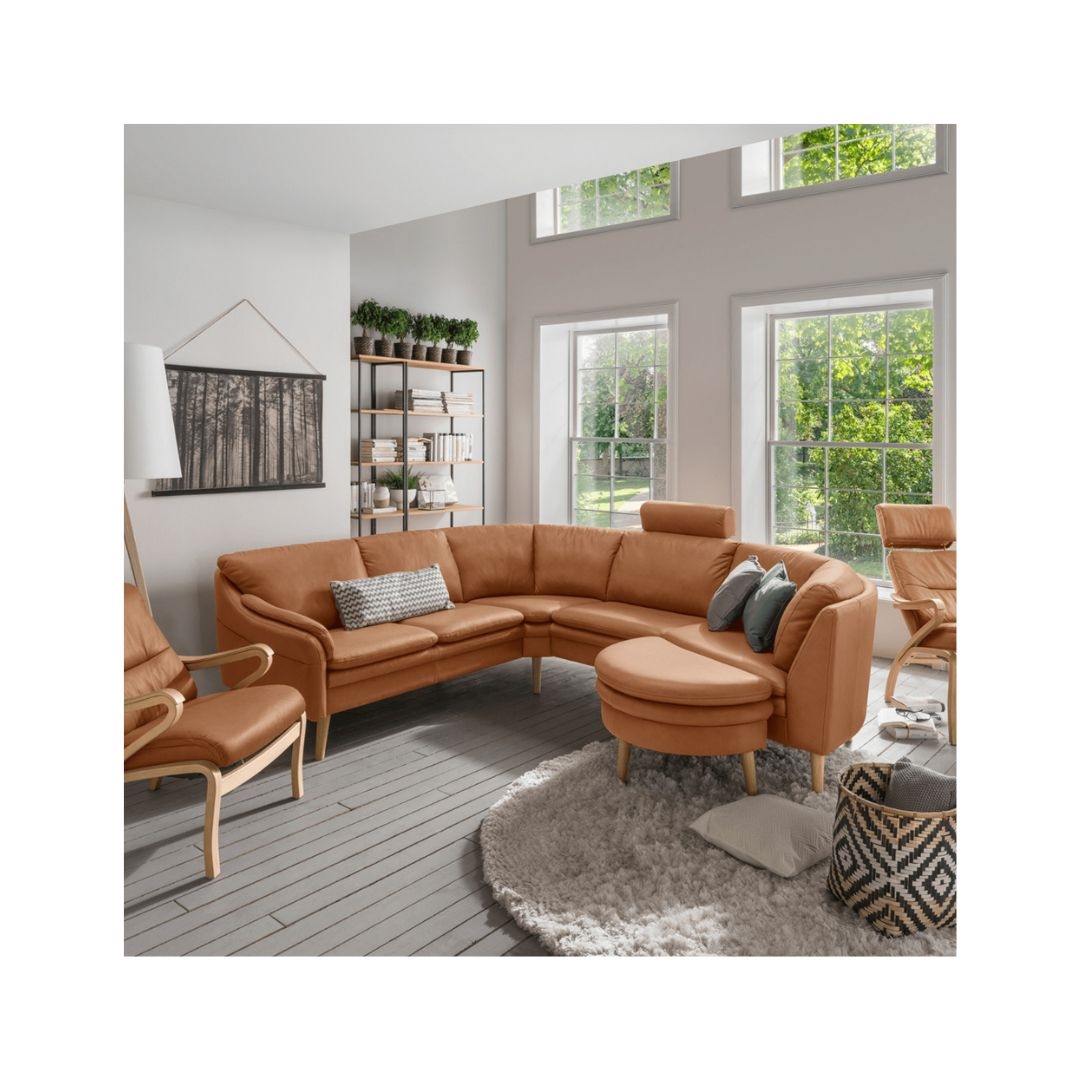 Har du brug for ekstra komfort? Tilføj nakkestøtter eller puf. Vælg mellem tre forskellige armlæn og ben – designet til at passe præcist til din bolig og livsstil.