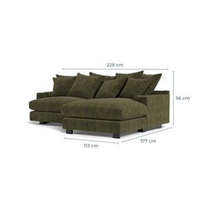Glasgow 1,5 pers. m/ chaiselong - Liam Bosko stof - Højre/venstrevendt - Mål: 228 x 177 cm. - Venstre - Set forfra