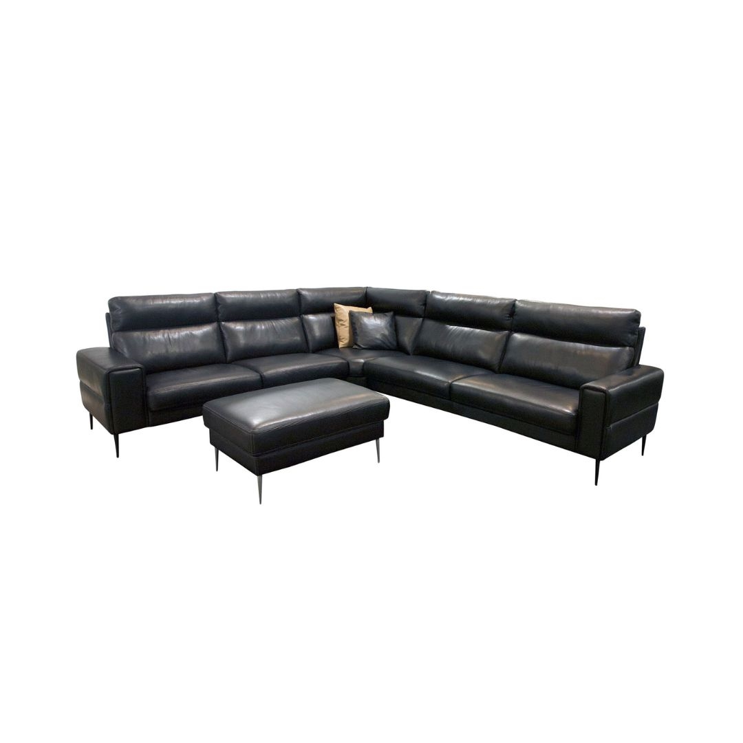 GRANDIOSA - HJØRNESOFA - SORT SEMIANILIN LÆDER - MÅL: 249 X 285 CM.