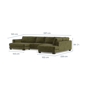 • Mål: L 397 cm x D 228 cm x H 84 cm
