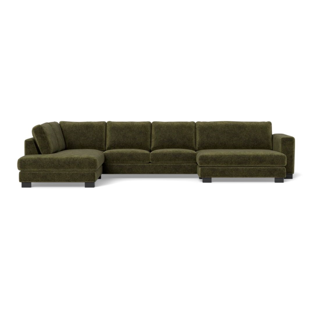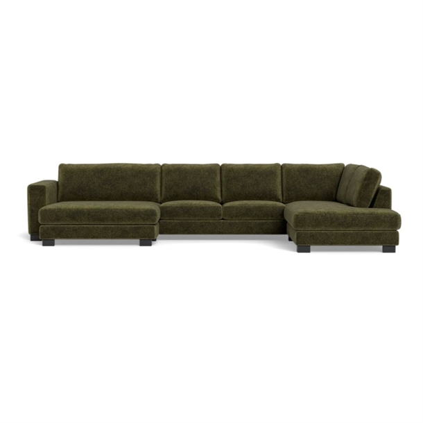 Halifax sofa med chaiselong og open end - 397 x 228 cm. - Alis stof Grøn