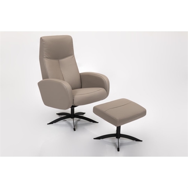 Den sorte Spacesokkel giver stolen et let og stilrent look og gør det nemt at dreje stolen efter behov. Ryggen kan lænes tilbage, så du kan finde præcis den siddeposition, der passer til dig – uanset om du vil læse, se tv eller bare slappe af.