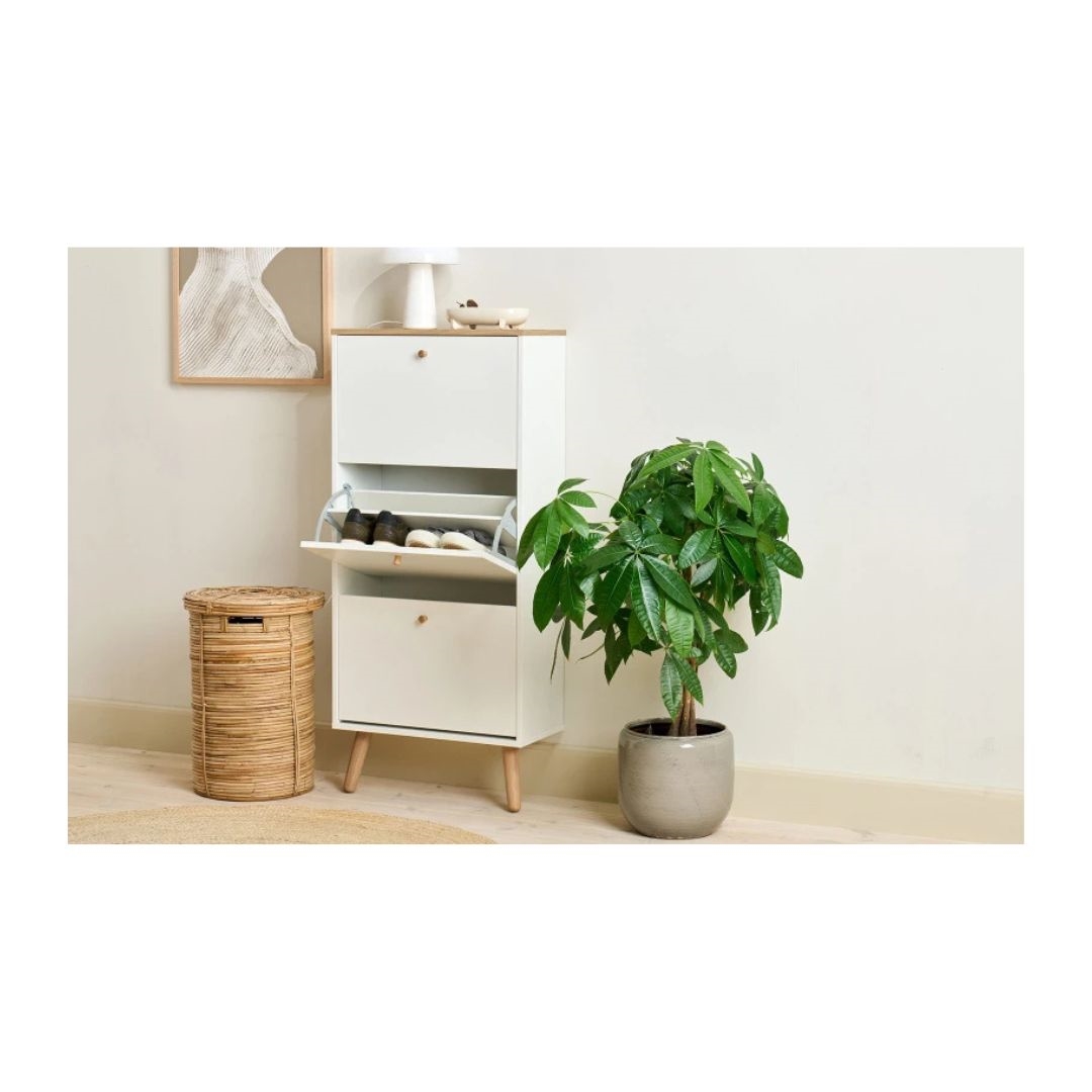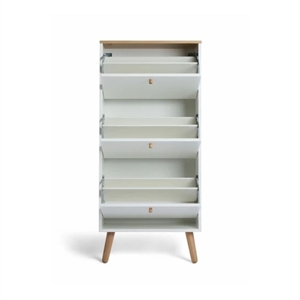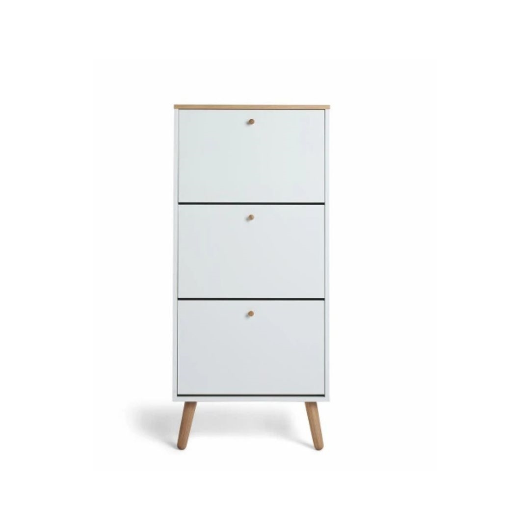 Hold orden med stil. Hub skoskab 1657 kombinerer funktionalitet med et rent, nordisk udtryk, der passer perfekt til moderne hjem. Det hvide korpus med detaljer i egetræsfinér giver et naturligt og varmt præg, mens de tre rummelige skuffer sørger for, at dine sko altid er organiserede og lette at finde.