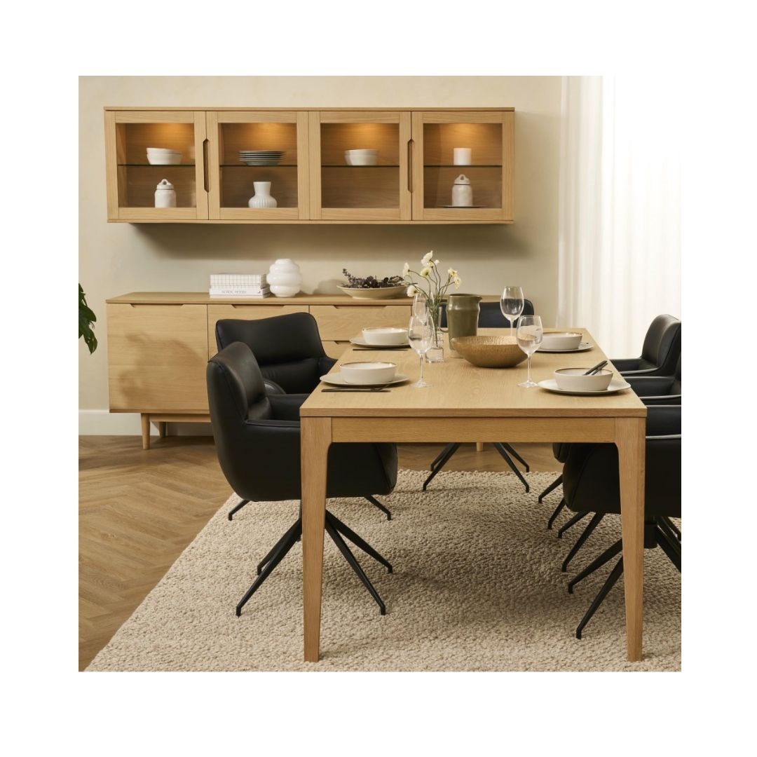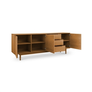 Den brede skænk passer perfekt i stuen, spisestuen eller et større opholdsrum, hvor der er behov for rummelig opbevaring. De slanke træben giver møblet et let og moderne udtryk og gør det nemt at holde gulvet rent. Brug skænken til service, duge, dokumenter eller hverdagens opbevaring, og indret toppen med lamper, kunst eller personlige detaljer. Kerteminde skænken bidrager til en rolig og harmonisk indretning og er let at kombinere med andre møbler i samme serie.