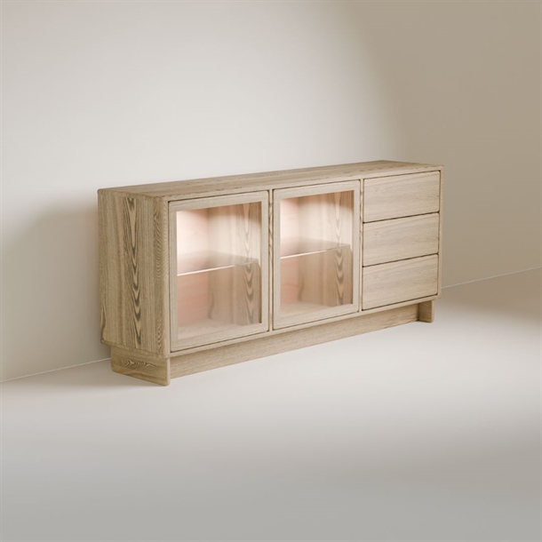 Kristensen og Kristensen - Ella Skænk E3 / 2 x Glaslåger / 3 skuffer / Afrundet kanter / Træ sokkel / Eg