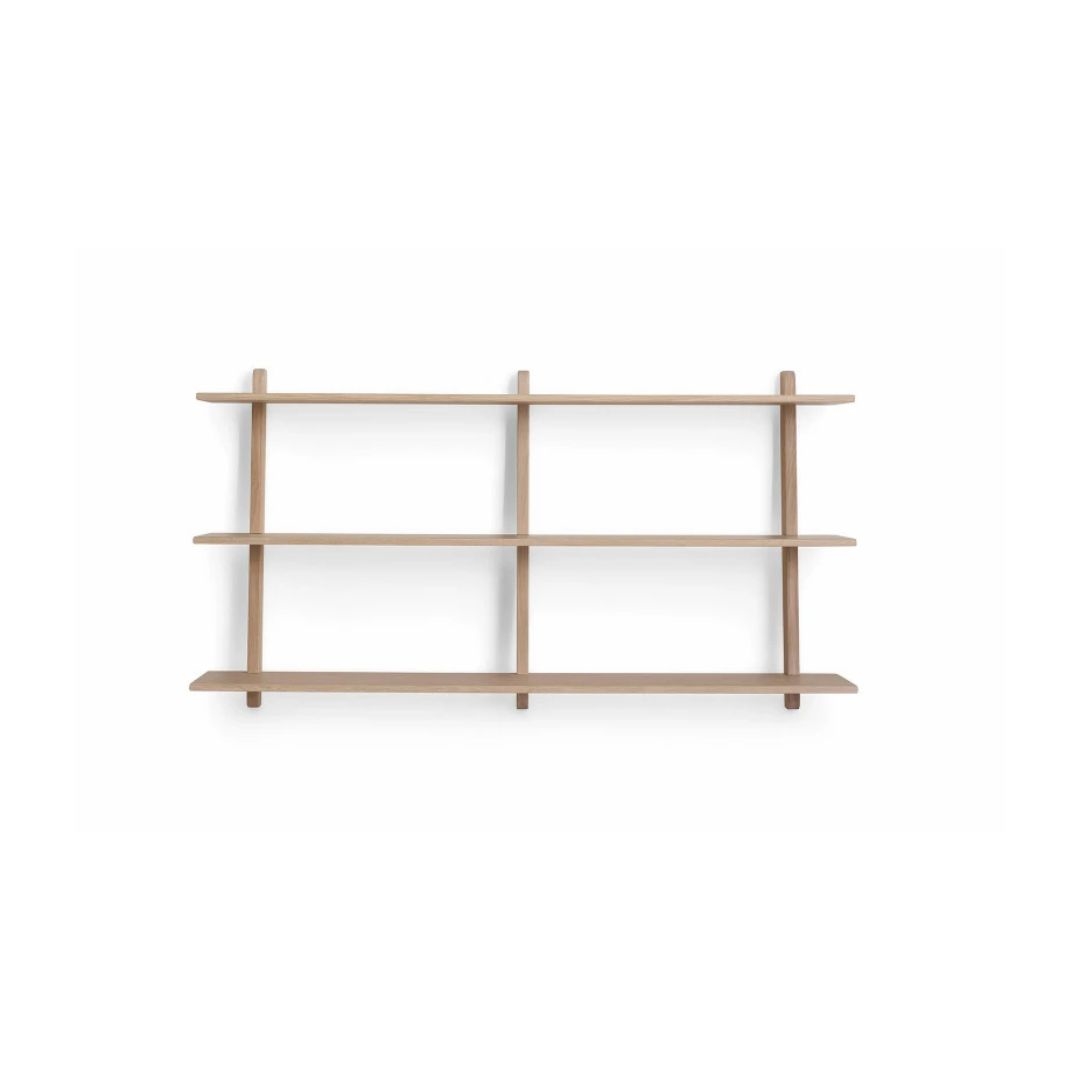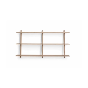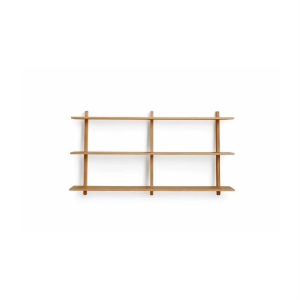 Largo-reolen er den ideelle løsning til dig, der søger et let, stilrent og funktionelt opbevaringsmøbel. Den kompakte opstilling gør den perfekt til mindre rum eller som et ekstra dekorativt element på væggen. Det enkle formsprog giver et moderne og roligt udtryk, mens egetræets varme nuance tilfører naturlighed til indretningen.