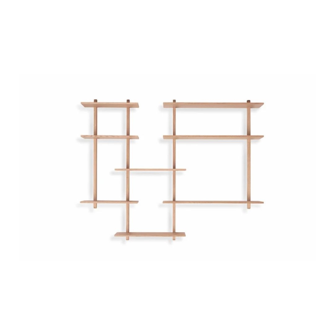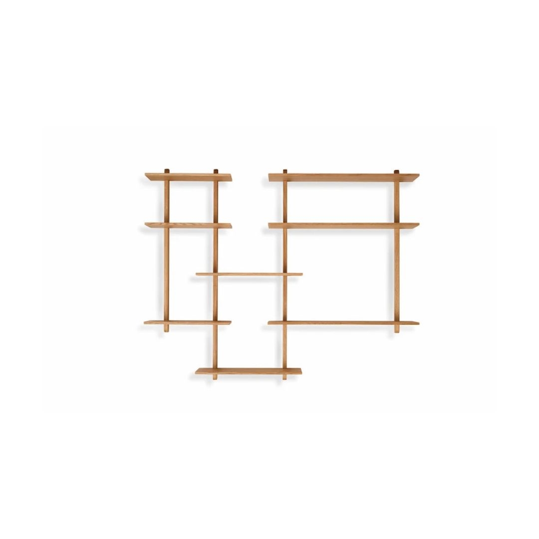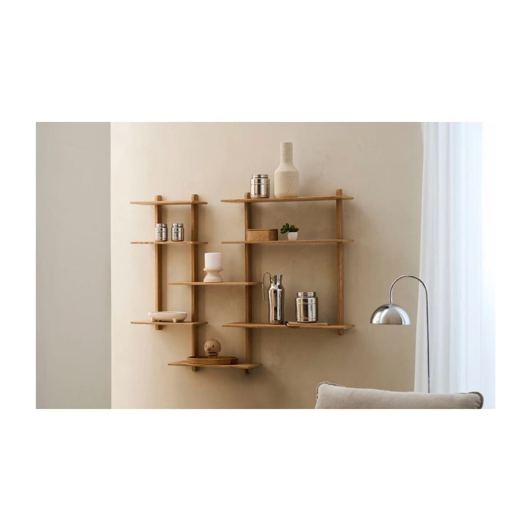 Largo-reolen er den ideelle løsning til dig, der søger et let, stilrent og funktionelt opbevaringsmøbel. Den kompakte opstilling gør den perfekt til mindre rum eller som et ekstra dekorativt element på væggen. Det enkle formsprog giver et moderne og roligt udtryk, mens egetræets varme nuance tilfører naturlighed til indretningen.