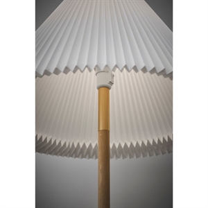 Le Klint gulvlampen 328 forener klassisk håndværk med moderne design. Udført i lyst eg og med smukke messingdetaljer, henter lampen tydelig inspiration fra Le Klints ikoniske formsprog, men med et raffineret, nutidigt tvist. Lampens fod samles elegant med stangen via en eksklusiv messingkobling, som understreger designets enkle, skulpturelle linjer.