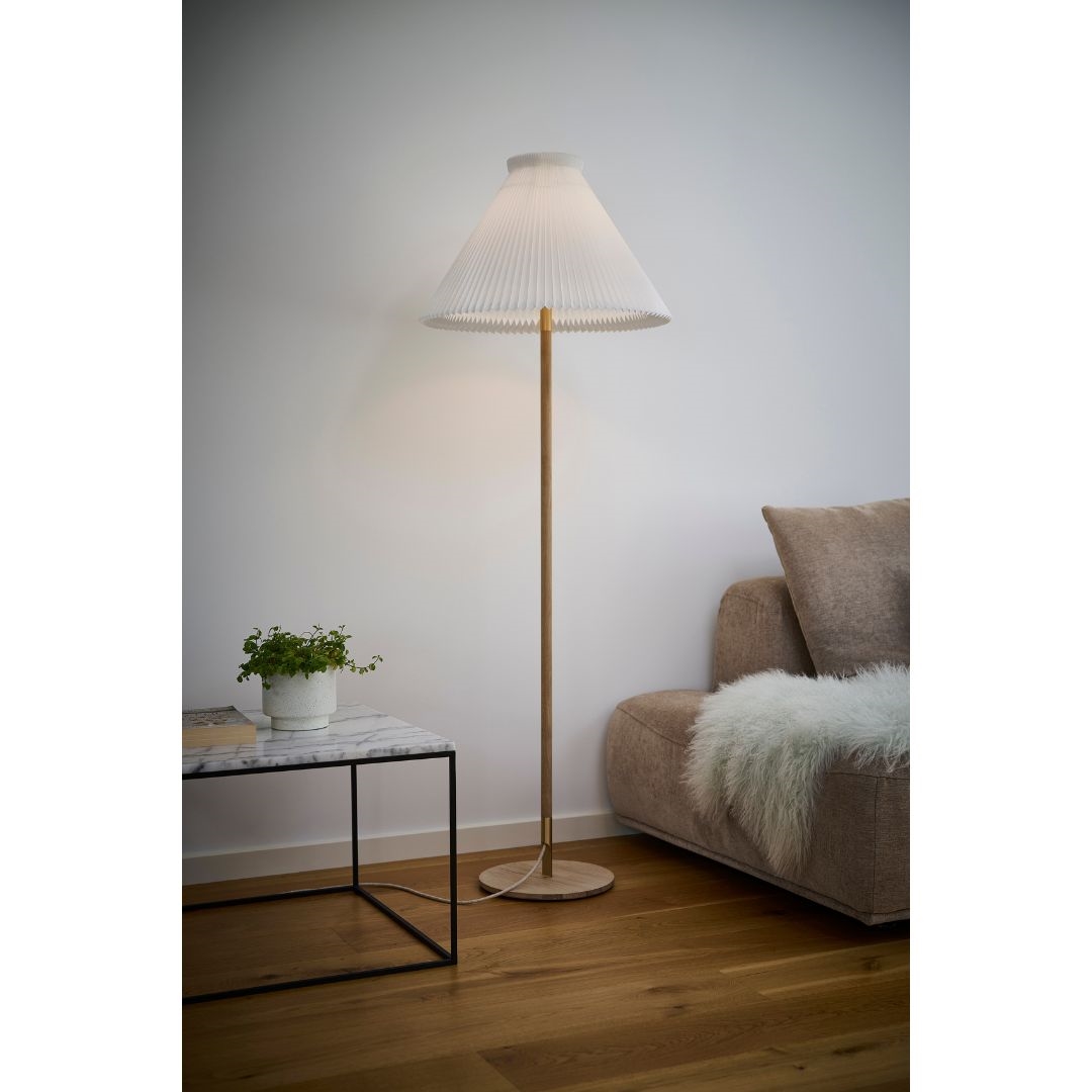 Le Klint 328 Gulvlampe – Lys eg og messing med Model 1 skærm