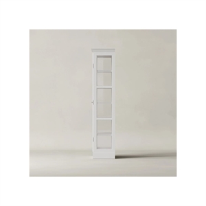 V1 vitrineskabet er perfekt til mindre rum, som f.eks. et sommerhus, børneværelset eller ethvert sted, hvor du ønsker at fremvise dine mest værdifulde genstande. Brug skabet til at udstille yndlingslegetøj, dekorationer eller porcelæn på de fem rummelige hylder, som alle er synlige gennem de elegante glaspaneler.