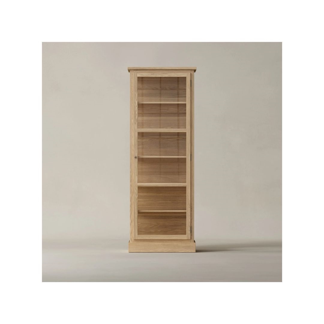 Lindebjerg Designs N1 vitrineskab er en smuk og klassisk opbevaringsløsning til hjemmet. Dette stilrene vitrineskab er udført i massiv lyst egetræ, med en mat lakeret overflade og omfavner det skandinaviske design med glas på alle sider, hvilket giver en let og elegant følelse i rummet. De ædle messinghængsler og greb tilføjer en sofistikeret finish, og den traditionelle top-profil gør vitrinen tidløs og passende i både moderne og klassiske indretninger.