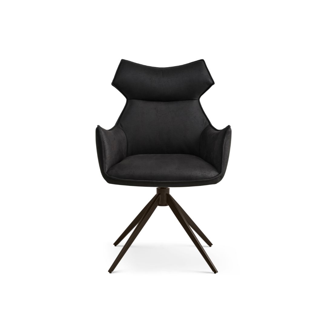 Liva spisebordsstol i Onyx black stof og sort drejestel