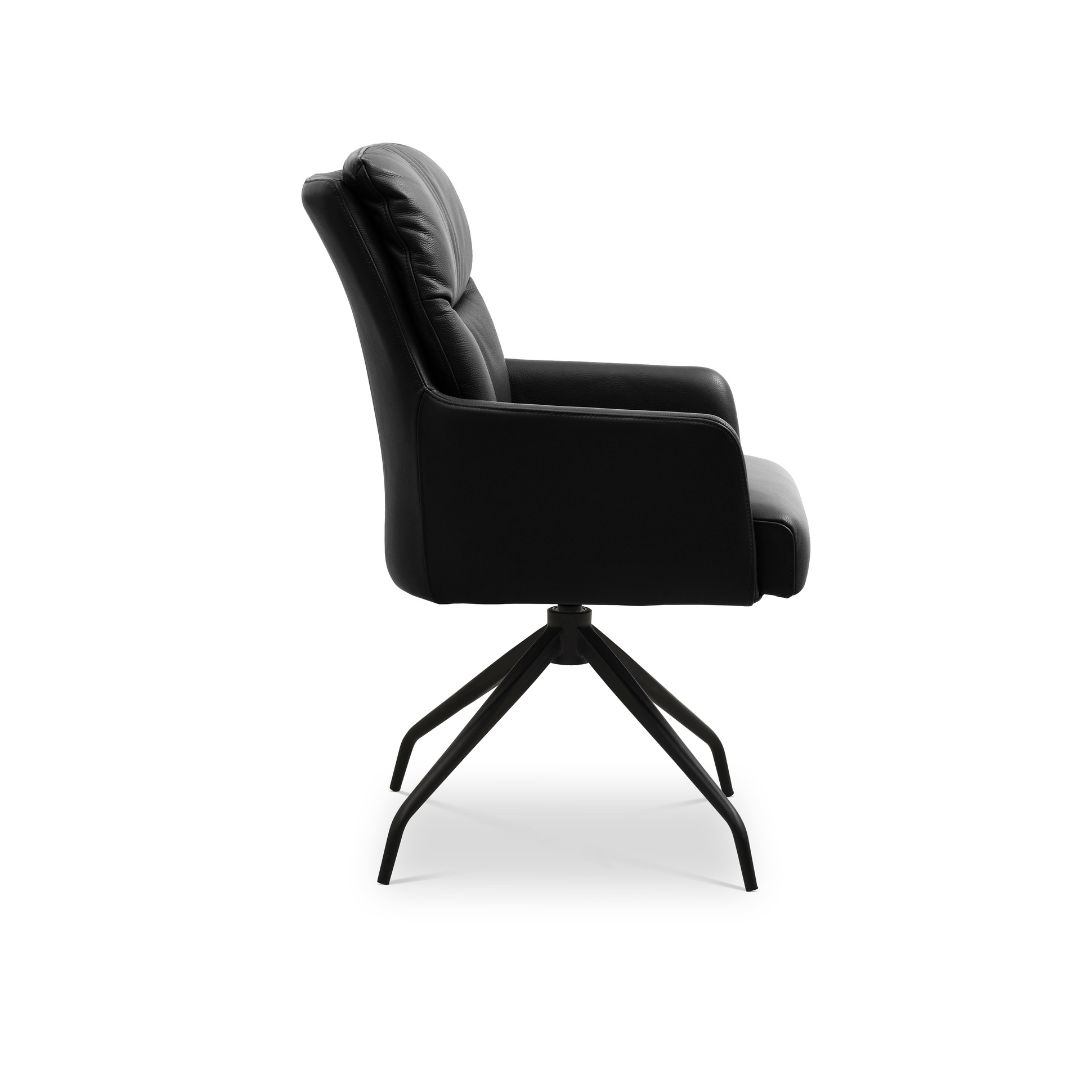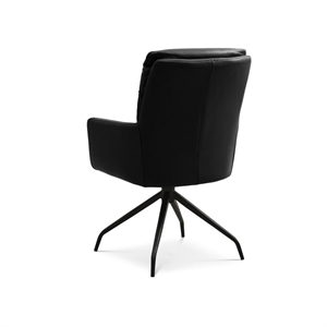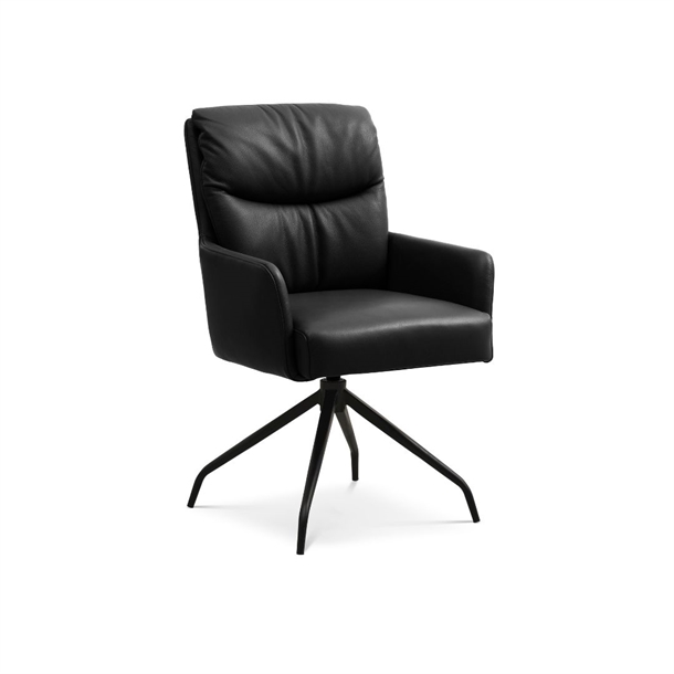Lotus spisebordsstol i sort semianilin læder kombinerer et varmt, indbydende udtryk med daglig komfort og holdbarhed. Det bløde, men slidstærke læder giver stolen et luksuriøst look uden at være krævende at vedligeholde — perfekt til travle hjem. Den polstrede ryg og sæde fordeler trykket behageligt, mens de indbyggede armlæn understøtter afslappede middage og lange samtaler. Den sorte drejesokkel gør stolen let at rokere rundt og tilføjer en moderne, funktionel detalje, der gør ind- og udstigning ved bordet mere fleksibel. Lotus er designet til at være både praktisk og elegant, så den fungerer lige så godt til hverdag som ved særlige lejligheder, og den passer nemt ind i mange indretningsstile.
